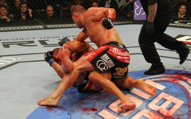 Na primeira luta, Cain Velásquez castigou Pezão e deixou o octógono cheio de sangue.