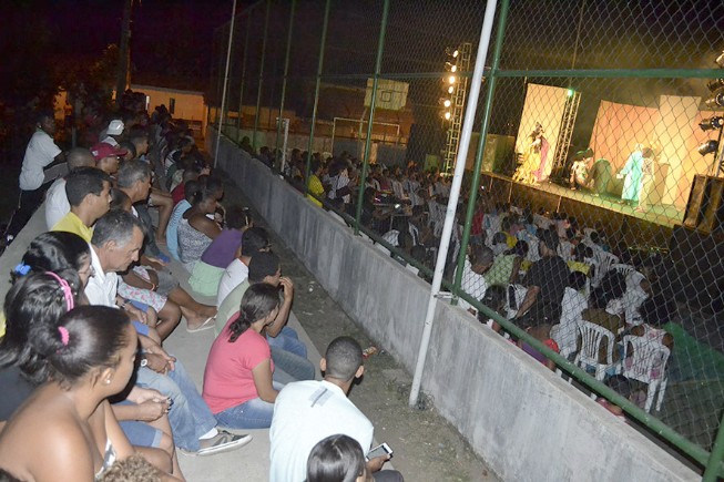 Com todas as 100 cadeiras colocadas na frente do palco lotadas, as arquibancadas da quadra esportiva se tornaram a melhor opção. "Isso aqui é melhor do que cinema", declarou a estudante Lidiane Almeida, que assistiu o espetáculo junto com as amigas.