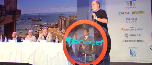 Antes da solenidade, atletas e coordenadores comemoravam nas arquibancadas do ginásio de esportes da AABB o reencontro com antigos colegas. Um dos criadores dos Jogos da Fenacef, o paulista José Félix de Oliveira, lembra que a competição surgiu após um jogo de futebol envolvendo ‘novos’ e ‘velhos’ companheiros da Caixa Econômica Federal. “A ideia nasceu em Curitiba e já passou pelas cidades de Brasília, Lindoia, São Luiz, Natal e agora Salvador”.
